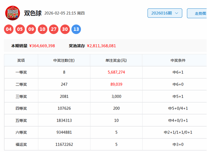 開獎回顧:第2026016期雙色球獎號為04、05、09、10、27、30+13。區(qū)間比:4:0:2,奇偶比:3:3,首尾間距:26。